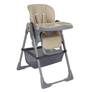 Scaun de masa pentru copii Sweet Nature Beige Bird cu inaltime reglabila, pliabil, spatar reglabil, roti,husa impermeabila detasabila, suport picioare reglabil, tavita dubla,centuri de siguranta,sistem siguranta antialunecare